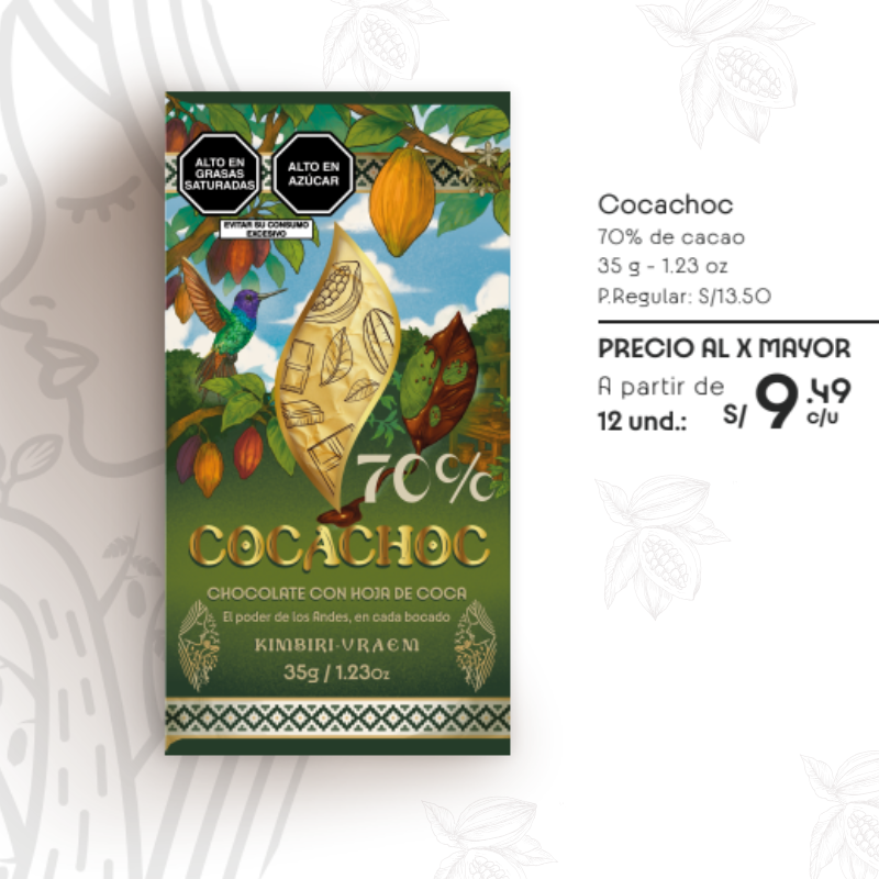 Elaborado con cacao peruano 100% natural, sin aditivos ni conservantes.